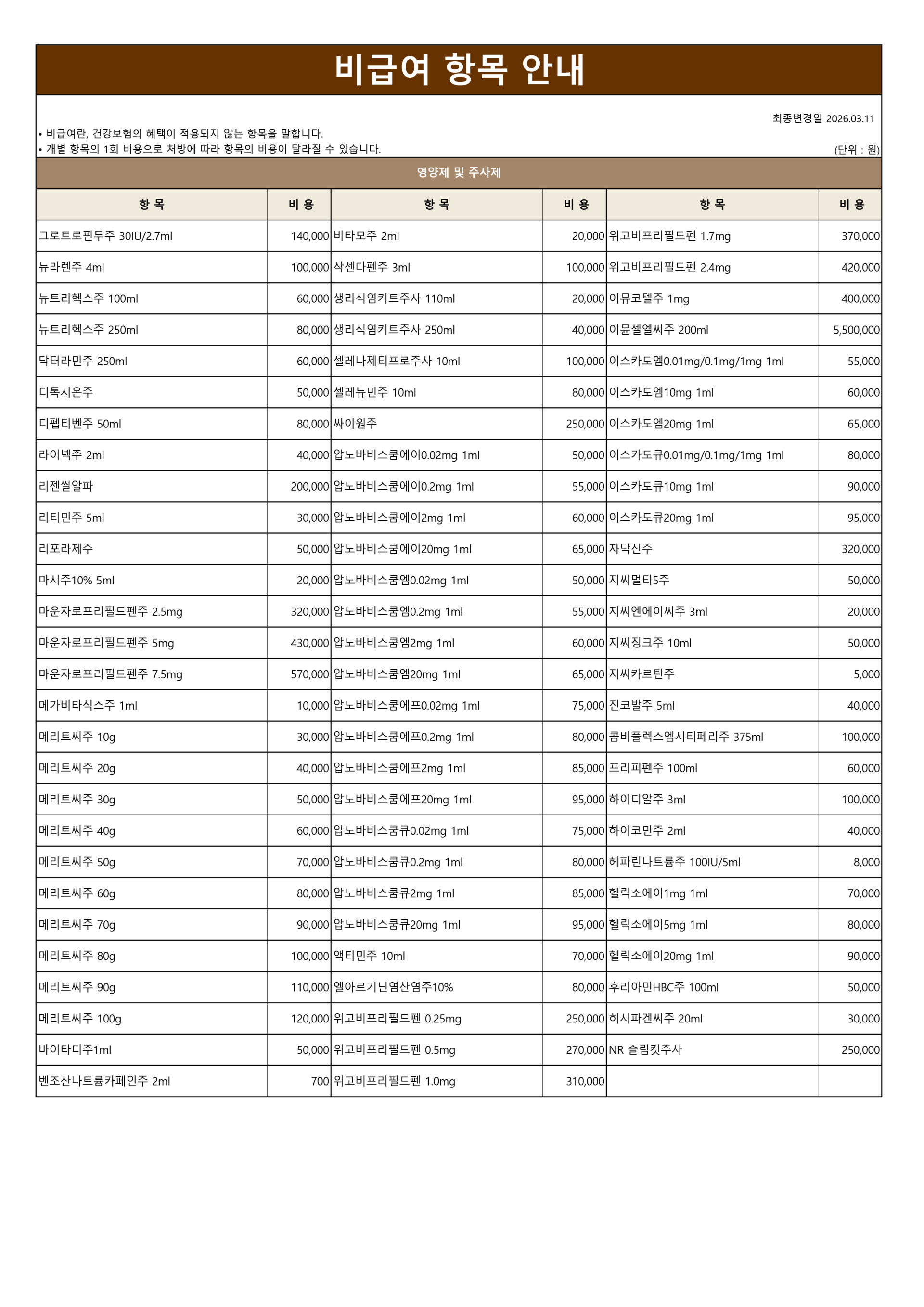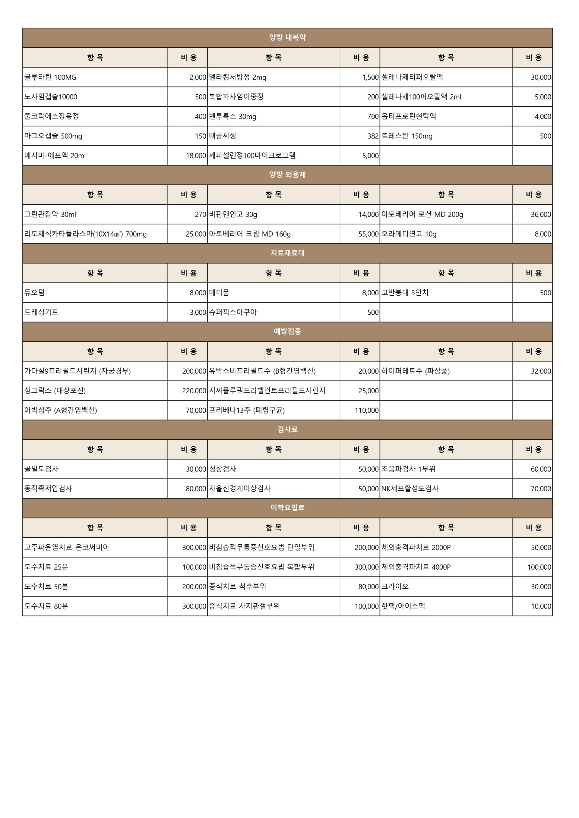 • 개별 항목의 1회 비용으로 처방에 따라 항목의 비용이 달라질 수 있습니다.